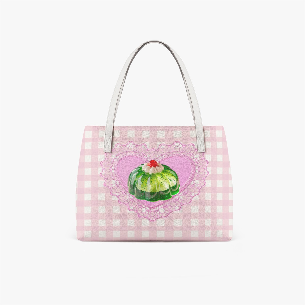 This pastel pink gingham tote bag blends sweet nostalgia with playful charm, featuring a glossy jelly dessert heart motif framed by delicate lace-inspired details. Crafted for everyday use, it’s a lightweight yet spacious shoulder bagperfect for carrying essentials while elevating your outfit with kawaii, coquette, and retro-inspired vibes. The soft color palette, cute dessert graphic, and clean silhouette make this aesthetic handbag an ideal accessory for lovers of cute fashion, Y2K, and pastel core style.