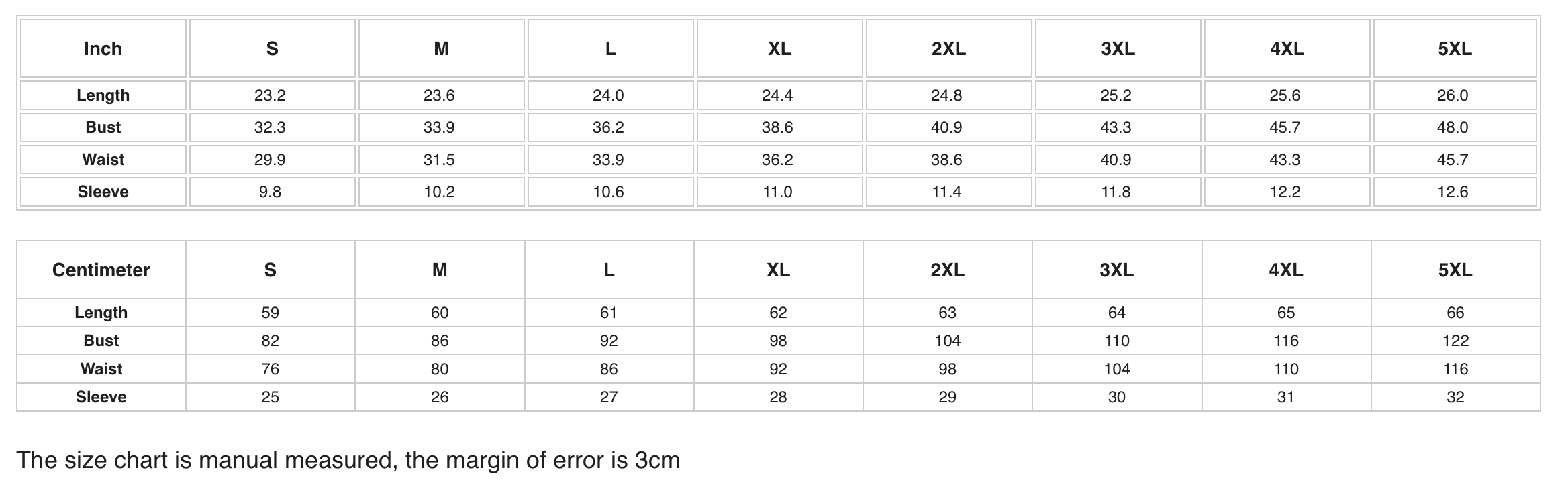 • There may be a difference of 1-5cm between actual product measurements and size charts. After the first washing, there will be 3%-5% shrinkage. Therefore it’s suggested to buy one size larger when choosing pure cotton products.
