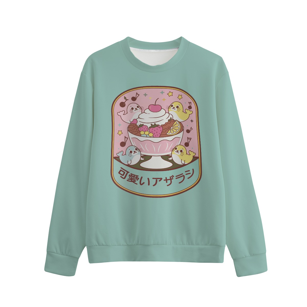 Bring soft pastel joy to your wardrobe with this Kawaii Azarashi sweatshirt. The mint-green base sets the perfect backdrop for a dreamy dessert print featuring playful pastel seals gathered around a giant parfait. Blending yume kawaii, fairy-kei, and pastel kidcore vibes, it’s a cozy statement piece for anyone who loves sweet, nostalgic Japanese fashion. Perfect for casual days, café dates, or adding a touch of Harajuku charm to your everyday look.