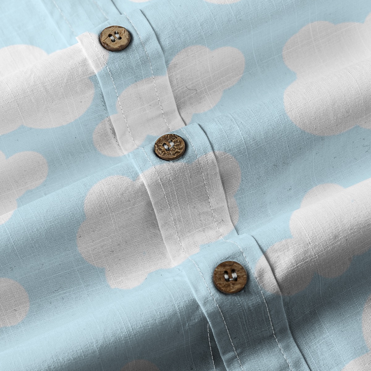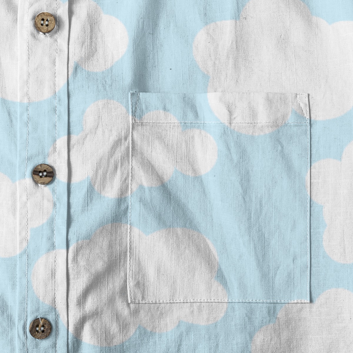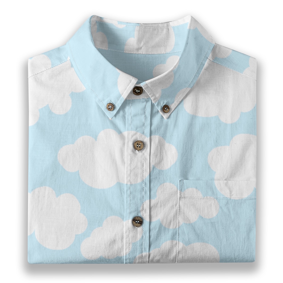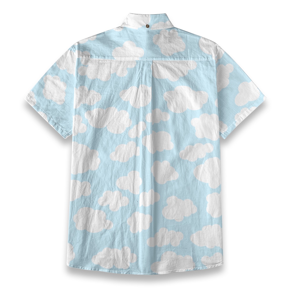 Float through your day in style with our whimsical cloud-print button-up shirt! Featuring a soft sky-blue background dotted with fluffy white clouds, this shirt is perfect for lovers of playful, pastel aesthetics and dreamy fashion. The lightweight fabric and relaxed fit make it ideal for layering or wearing on its own for a bold, carefree look.