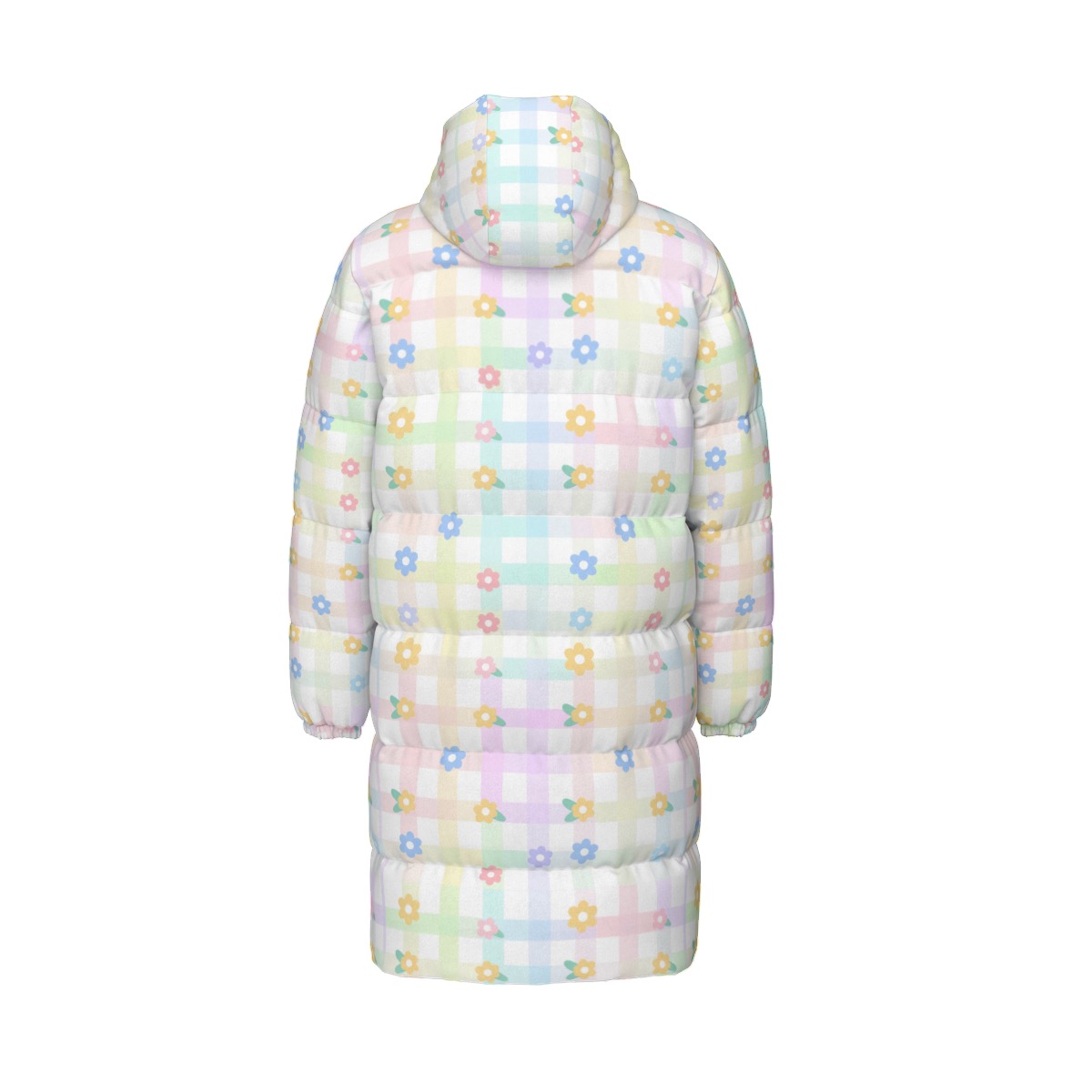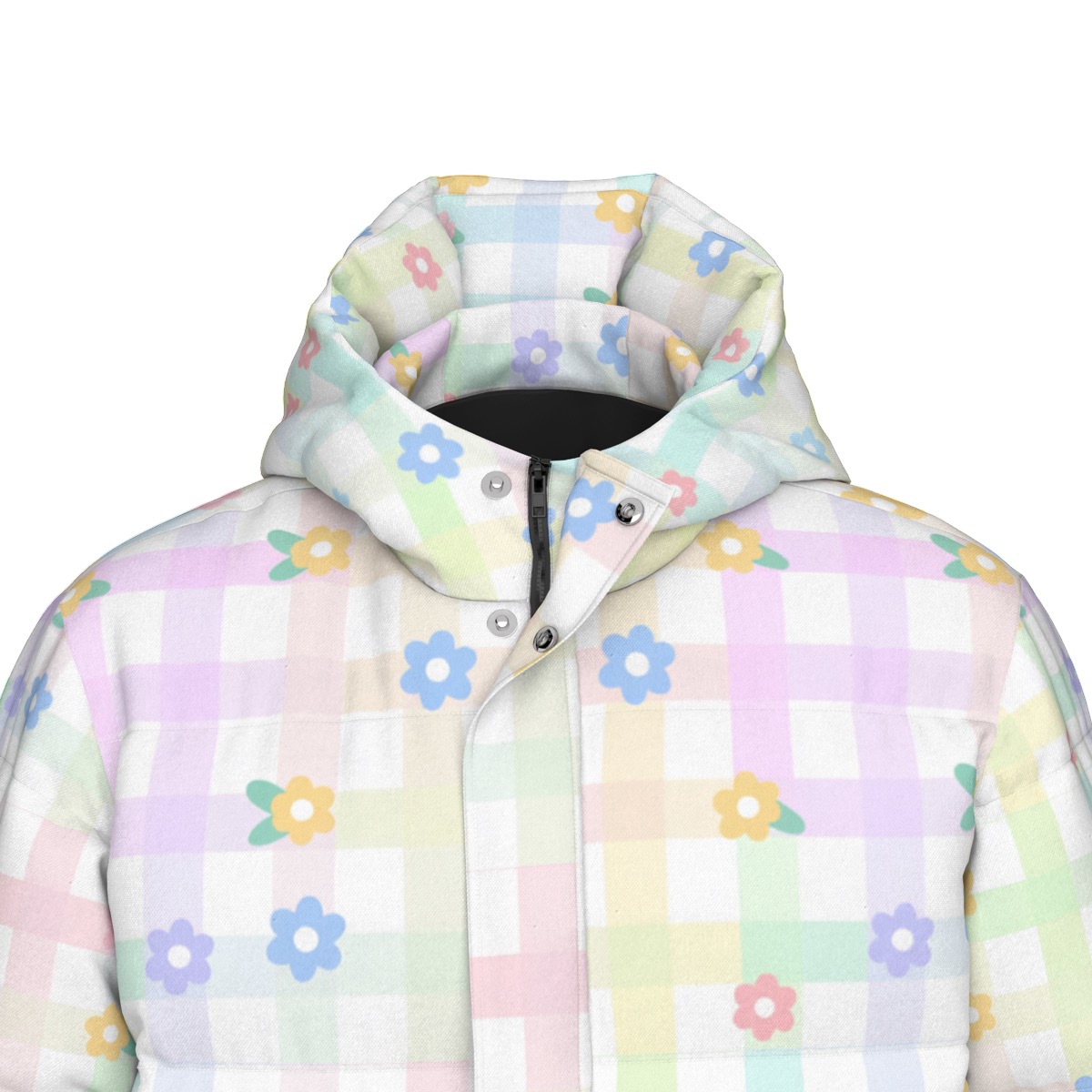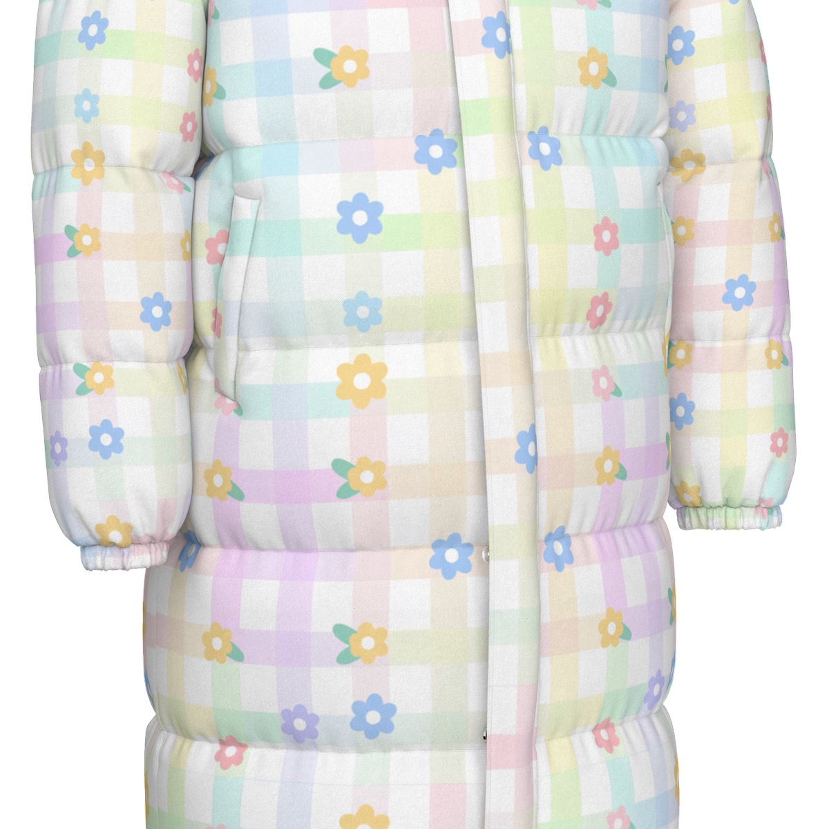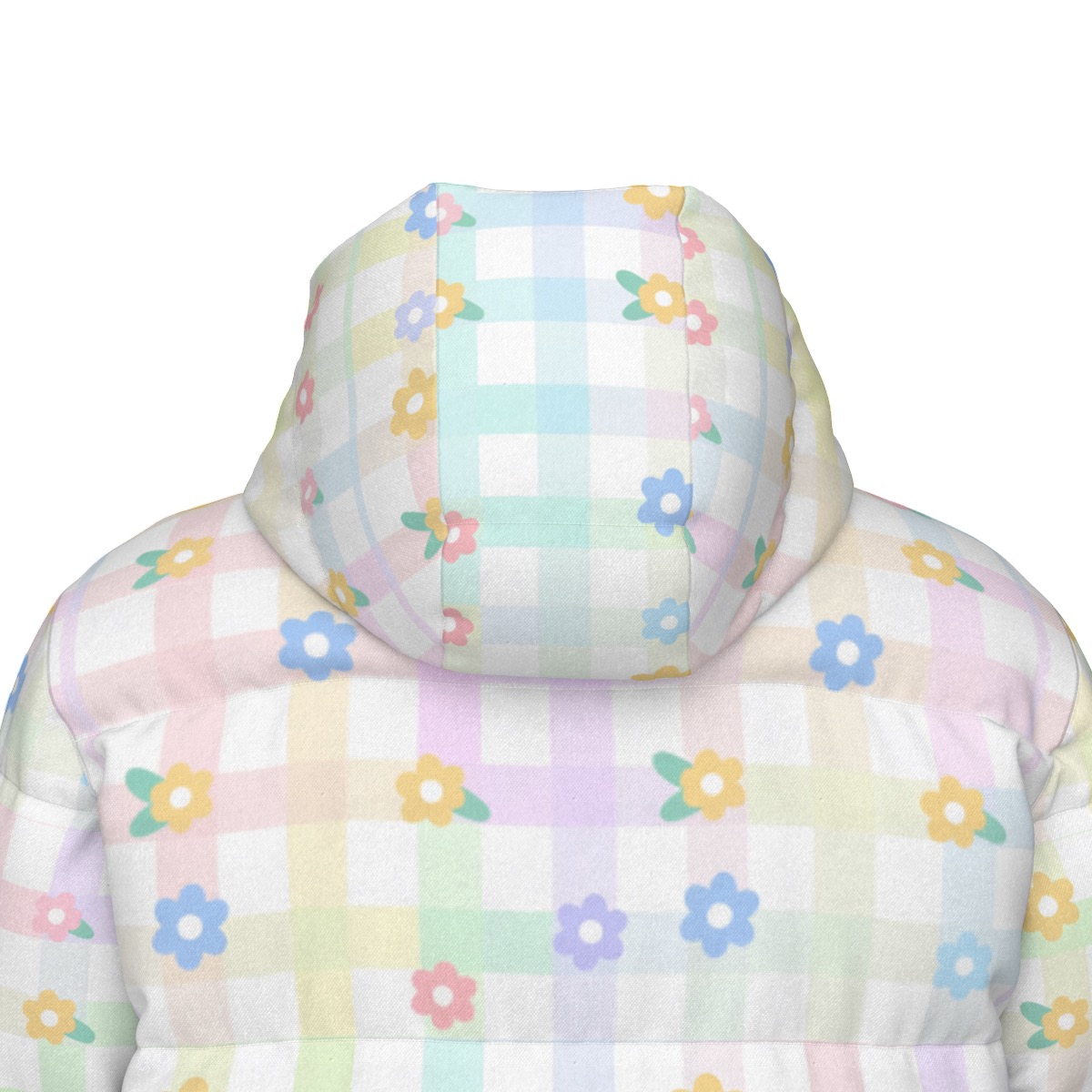 Pastel Gingham Flower Kidcore Puffer Coat – Fairy Kei Kawaii Down Jacket