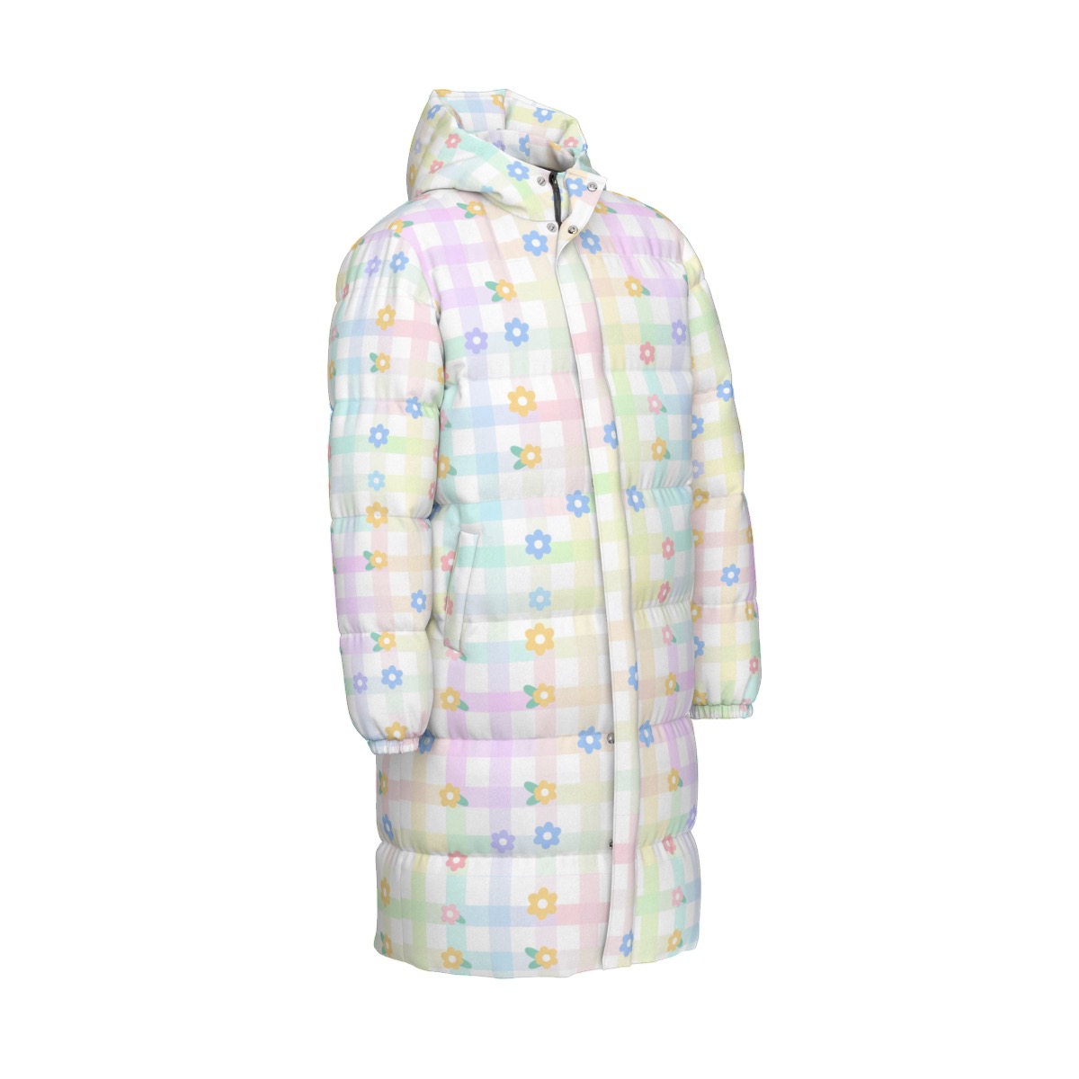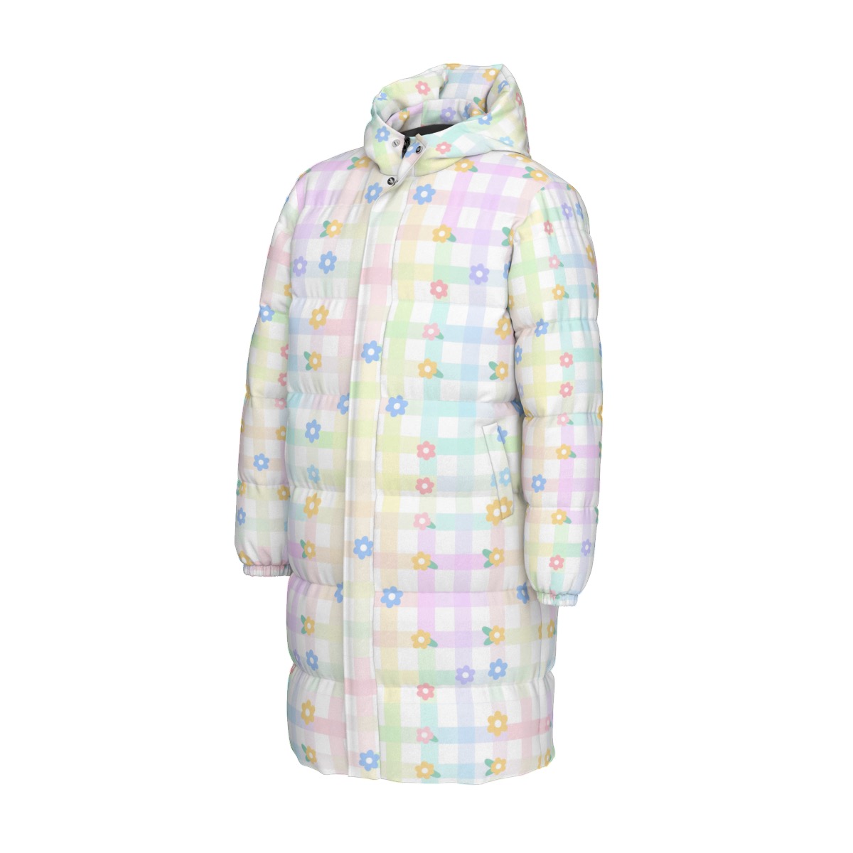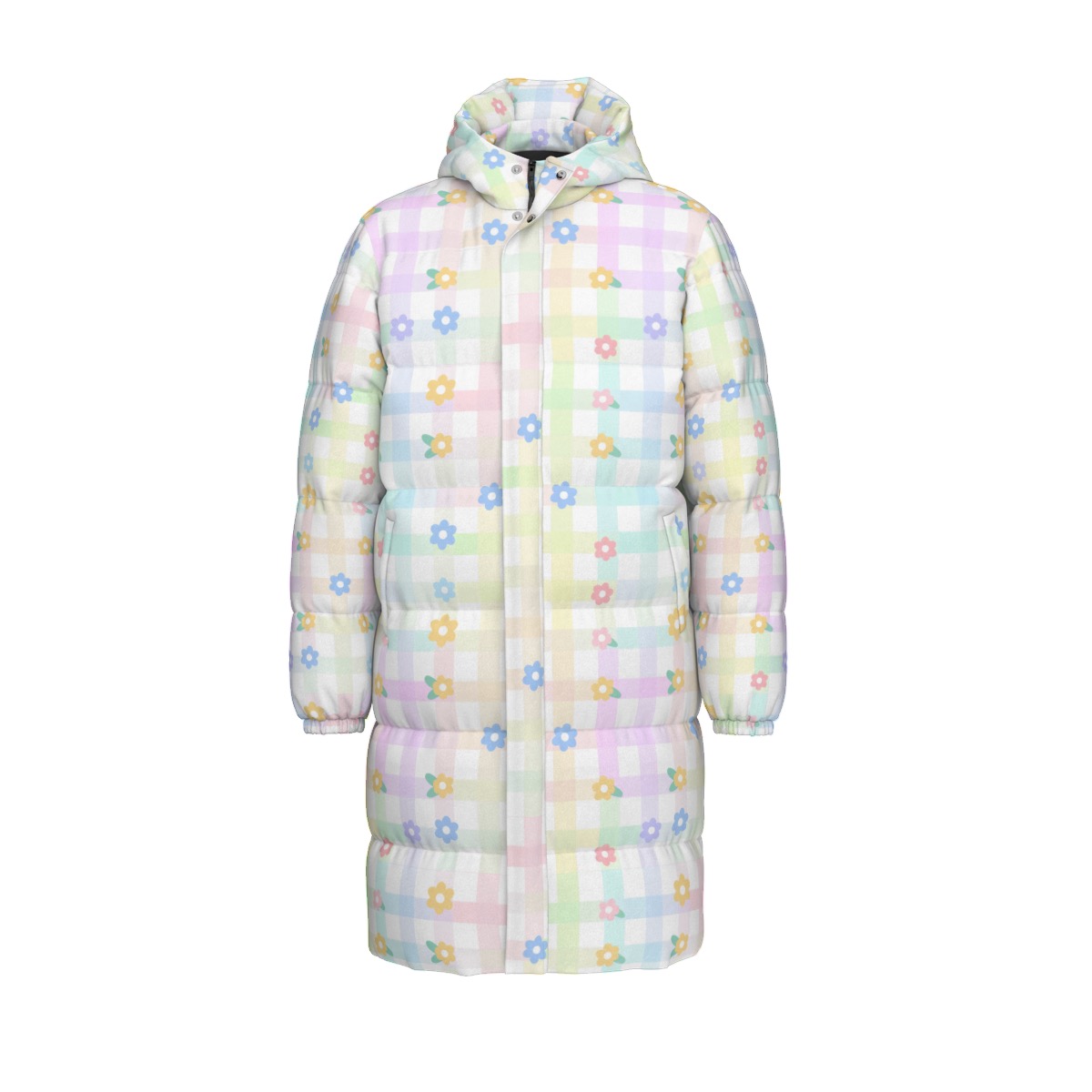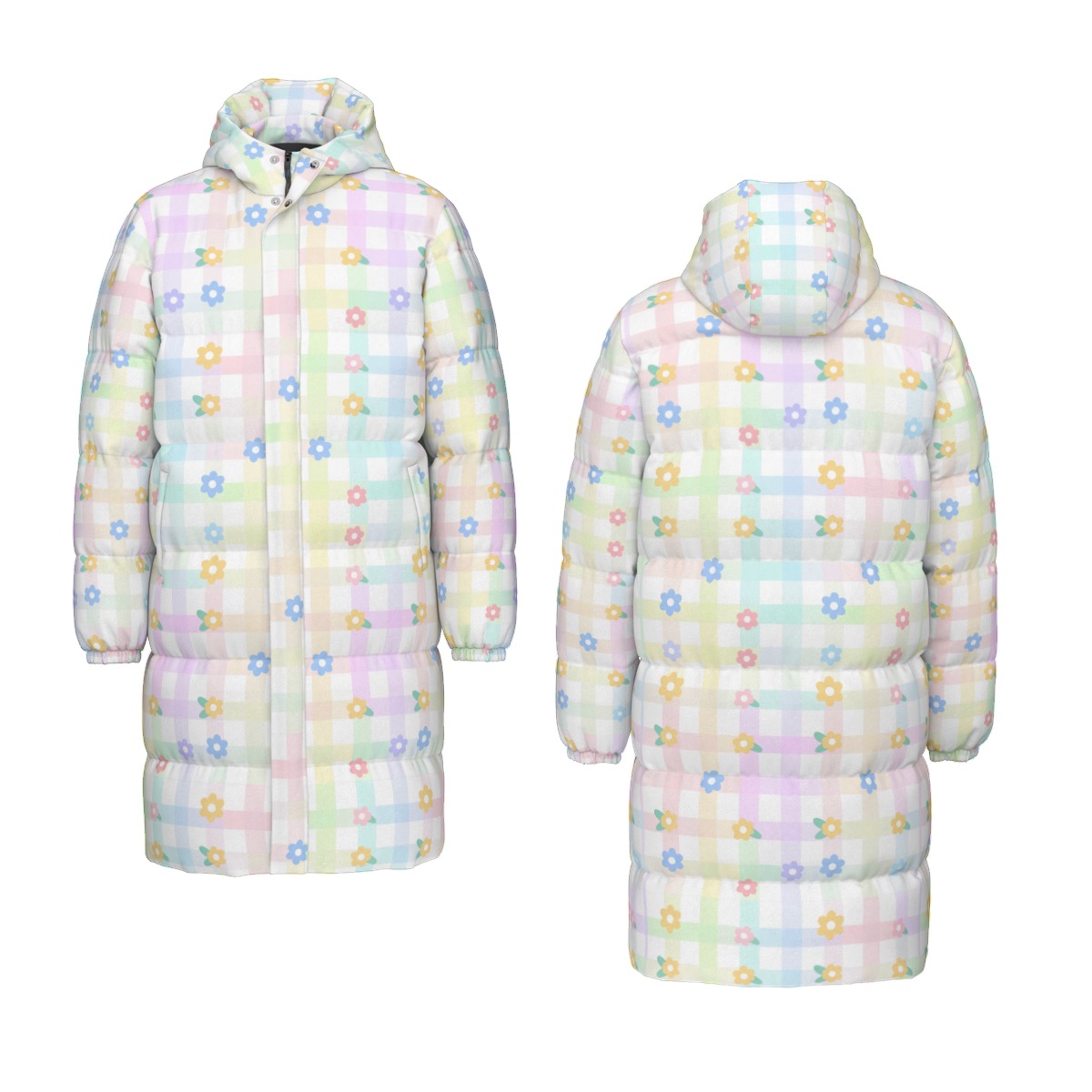 Pastel Gingham Flower Kidcore Puffer Coat – Fairy Kei Kawaii Down Jacket