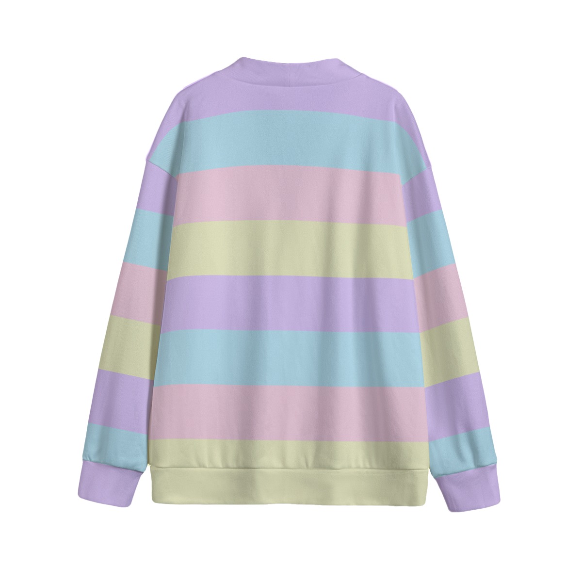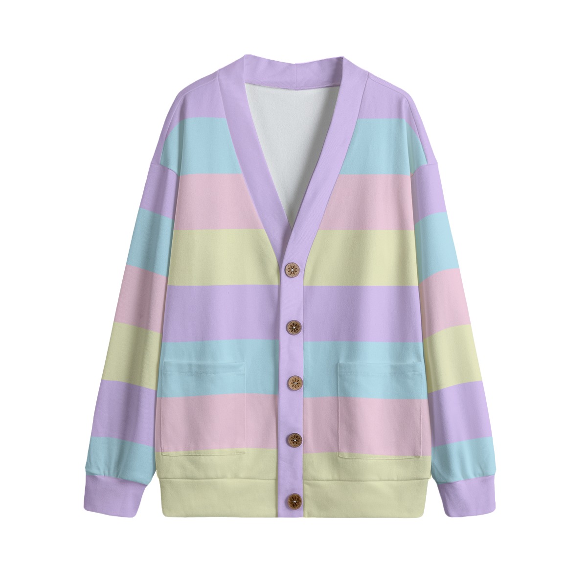 Step into a dream-bright pastel world with this spring sweater designed for lovers of all things kawaii, magical, and sweet. This oversized rainbow cardigan wraps you in soft, sherbet-colored stripes that feel straight out of a fairy kei daydream.