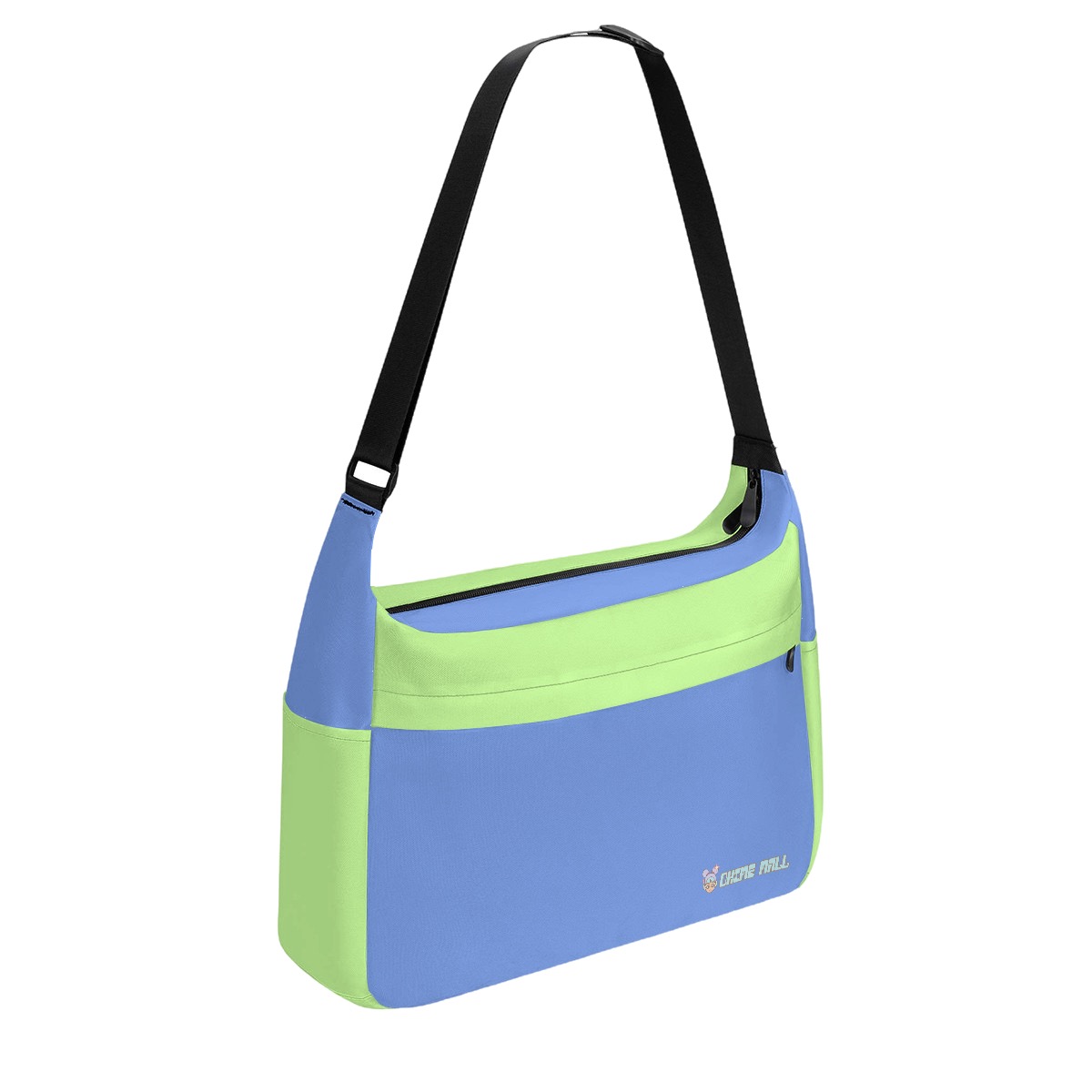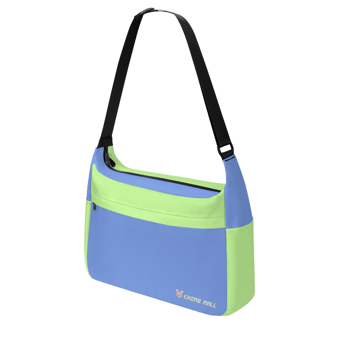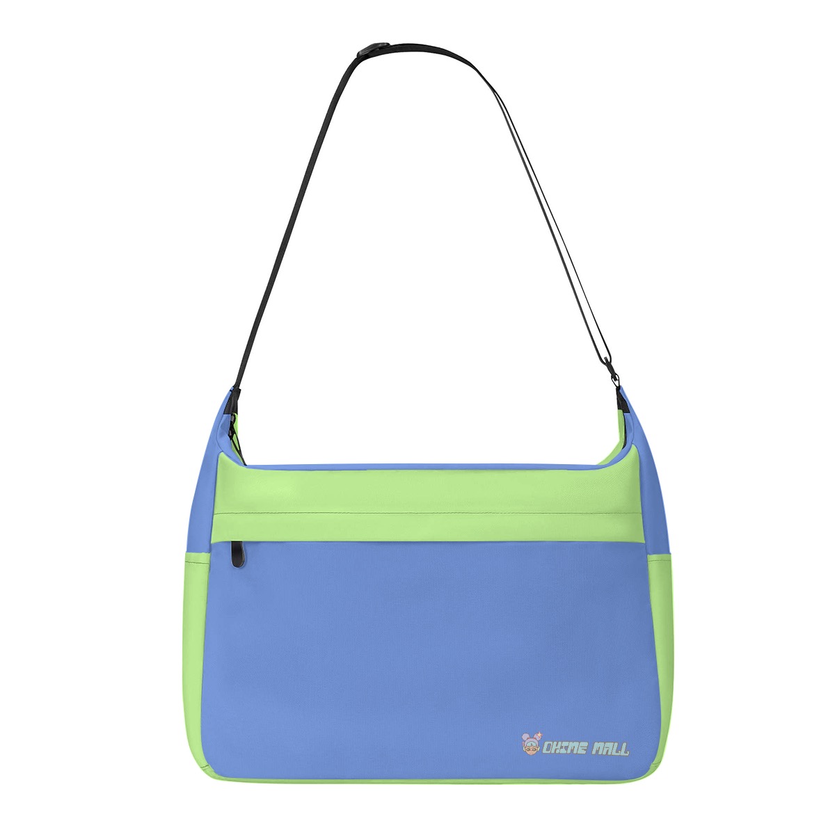 This pastel shoulder bag is basically a love letter to vintage anime dreams. The front features a soft-toned retro manga girl gazing into a candy-colored sky, surrounded by petals and neon-bright scenery. Her mint-green hair and luminous eyes give the whole piece an unmistakable 80s–90s shoujo aesthetic, blending nostalgia with bold, modern color blocking.